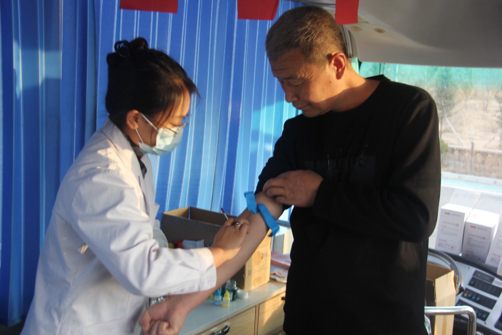 活动现场,采血车停靠在公司综合办公楼前,登记区、体检区、采血区划分清晰,现场秩序井然。党员干部带头站在队伍前列,挽起衣袖配合医护人员登记信息,胸前的党员徽章在阳光下格外醒目;青年职工紧随其后,不少人正拿着献血知识手册相互交流;还有多次参与献血的老职工,主动向首次献血的同事分享注意事项,现场氛围热烈又温馨。